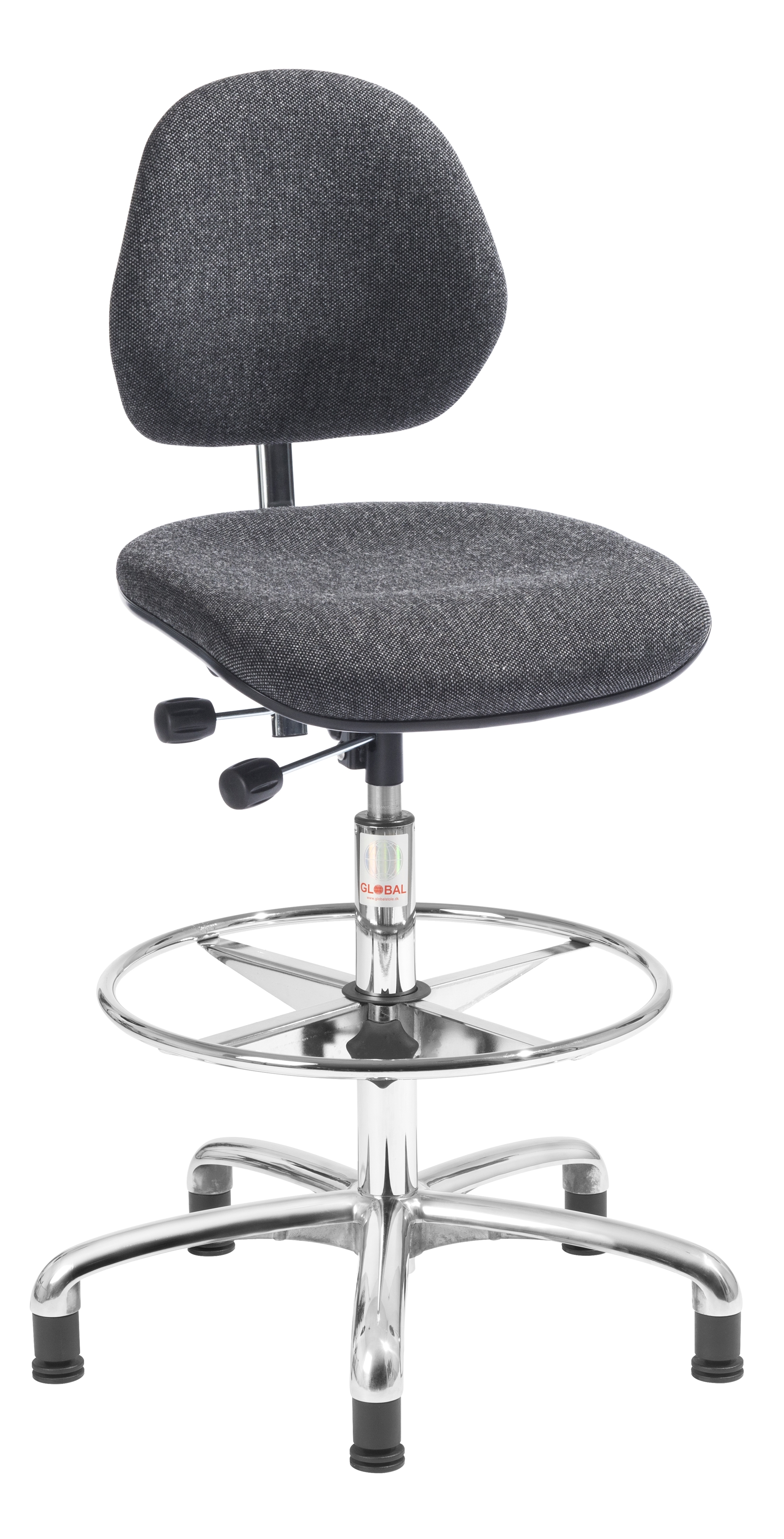 I områder hvor elektrostatisk ladning opstår, kan ESD stole fra Global Stole aflede den statiske elektricitet sikkert til gulvoverfladen, så den ikke forårsager skader på f.eks. elektroniske komponenter. Komfortabel ESD industristol, med blødt polstret sæde og ryg. Ledende stol hvor sæde og ryg er betrukket med et specialstof, hvor metaltråde er indvævet i stoffet. Euromatic mekanismen hjælper med hurtig indstilling af sæde- og ryglænsvinkel. Sædets indstilling kan vinkles 12° frem og 3° tilbage. Ryglænets 16° frem og 6° tilbage.