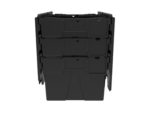 ALC kassen med integreret låg er perfekt til f.eks. interne retur systemer, da den kan stables ovenpå hinanden i fyldt tilstand, og når den er tom, er det muligt at stable kassen indeni hinanden.