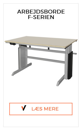 Hos BLEVA gør vi det nemt for dig at passe på dine medarbejdere, når du skal indrette deres fysiske arbejdsmiljø. Det er vigtigt, at du har de rigtige arbejdsborde, som passer til jeres specifikke behov. Alle vores arbejdsborde kan derfor justeres i højden på enten manuel eller elektronisk vis. Vores arbejdsborde er produceret i høj kvalitet med henblik på daglig brug på blandt andet lager, produktion, kontor eller værksted. Arbejdsbordet skal give dig en effektiv arbejdsdag og derfor kan alle vores borde udstyres med værktøjshylder, skuffekabinetter, værktøjskroge m.m. således at du får et større arbejdsområde på dit bord uden at dine vigtigste redskaber er gemt for langt væk. ArbejdsbordeFandt du ikke det du søgte ? Kontakt os på tlf. 98 11 12 11 for yderligere information |