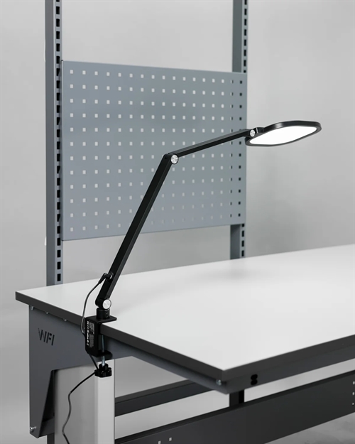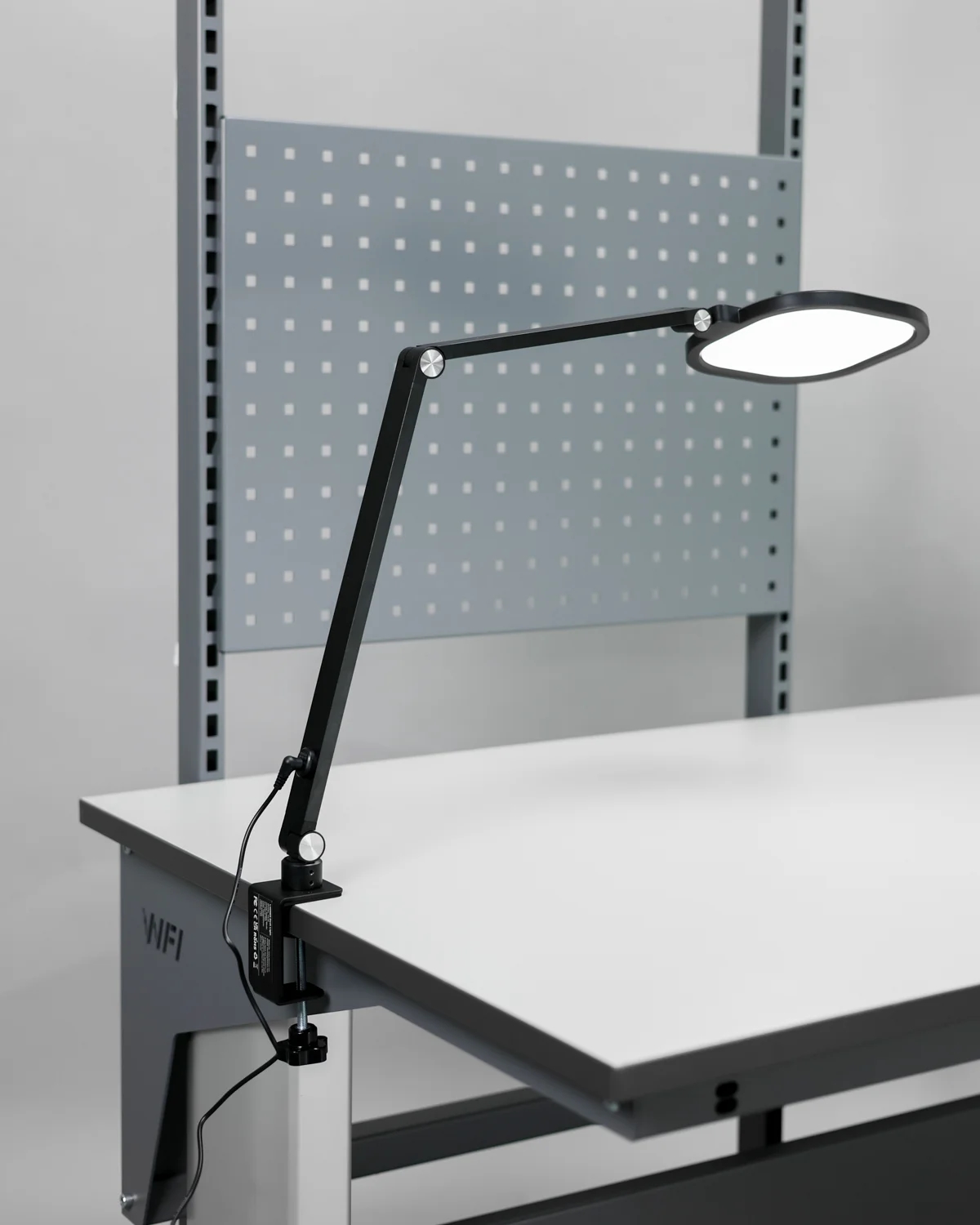 Praktisk LED-skrivebordslampe til arbejdsbænke. Lampen monteres nemt på bordpladen med en skrueklemme og kan justeres i tre forskellige led for at opnå den perfekte belysningsposition. Arbejdsbordslampen tilbyder flere belysningsmuligheder og -indstillinger, den er dæmpbar og har mulighed for at skifte mellem tre lystilstande: neutral, varm og kold. Derudover har den en timerfunktion. En ideel løsning til opgaver, der kræver ekstra lys, såsom samling af små komponenter. Lampen er 180x180 mm.
