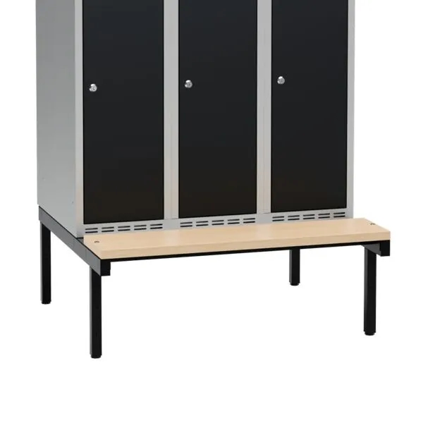 Bænkunderstel til garderobeskabene placeres hurtigt og enkelt op på de helsvejste sokler - ingen montering. Højden på bænkunderstellet er 320 mm og 850 mm i dybden . Fås i bredden 300, 400, 600, 800, 900 og 1200 mm.