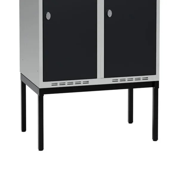 Benramme til garderobeskabene placeres hurtigt og enkelt op på de helsvejste sokler - ingen montering. Højden på understellet er 200 eller 320 mm. Fås i bredden 300, 400, 600, 800, 900 og 1200 mm.