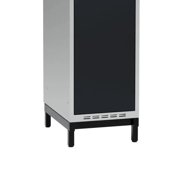Benramme til garderobeskabene placeres hurtigt og enkelt op på de helsvejste sokler - ingen montering. Højden på understellet er 200 eller 320 mm. Fås i bredden 300, 400, 600, 800, 900 og 1200 mm.