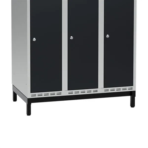 Benramme til garderobeskabene placeres hurtigt og enkelt op på de helsvejste sokler - ingen montering. Højden på understellet er 200 eller 320 mm. Fås i bredden 300, 400, 600, 800, 900 og 1200 mm.