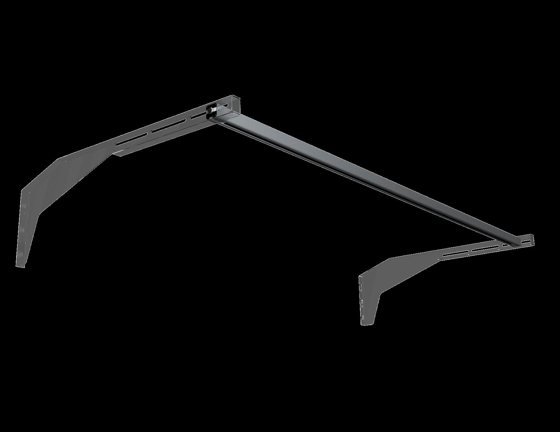 Langsgående C-profil, der anvendes til bevægeligt værktøjsophæng med løbekat og fastgørelse af arbejdsbelysning. C-profilen er designet til montering over arbejdsbænken mellem to beslagarme, som igen er fastgjort til perforerede stolper.