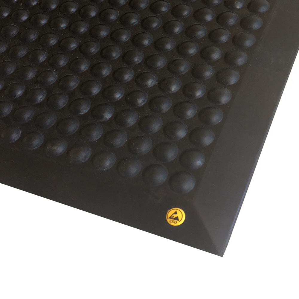 ESD Aflastningsmåtte Bubble til sikker håndtering af ESD-følsom elektronik. Fremragende at have som base til computerservice. Den bulede overflade stimulerer sammen med elasticiteten blodcirkulationen, hvilket reducerer belastningsskader i ben og ryg. ESD Aflastningsmåtte Bubble er velegnet, uanset hvor du står og arbejder i tørre miljøer. Måtten fås som standard nedenfor, men kan bestilles helt efter dine egne ønsker.
