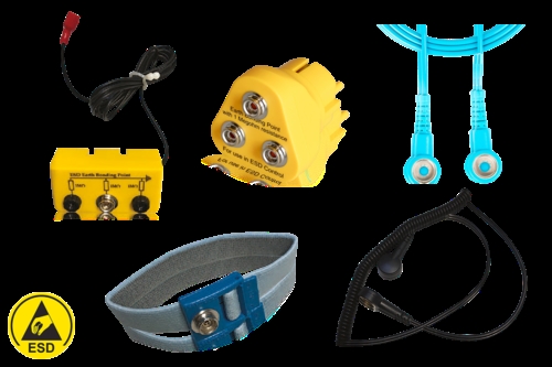 ESD forbindelseskit t/ESD borde. Indeholder: • Terminal til armbånd inkl. kabel til jord ESD • Jordkontakt • Jordkabel med trykknap • Armbånd • Spiralkabel til armbånd