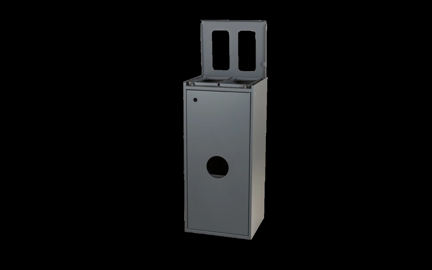 Affaldssystemet hvor du selv designer din kildesortering. Produktet er 100% dansk produceret, Alle beholdere er produceret 1,5 mm stål (Låg til pedalstativer produceres dog i aluminium.)