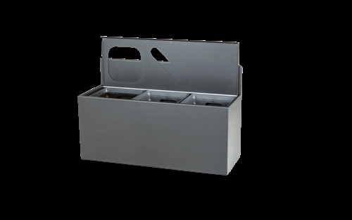 Affaldssystemet hvor du selv designer din kildesortering. Produktet er 100% dansk produceret, Alle beholdere er produceret 1,5 mm stål (Låg til pedalstativer produceres dog i aluminium.)