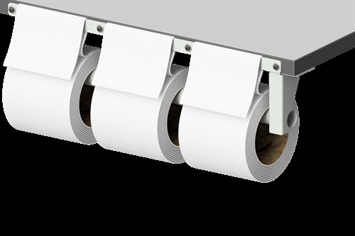 Etiketholder til etiketruller med en maksimal diameter på 120 mm. Optimeret til brug af tre ruller med en bredde på op til 140 mm. Holderen monteres under bordpladen med træskruer. Armlængde 450 mm. Rørdiameter 30 mm. Træskruer medfølger i pakken.