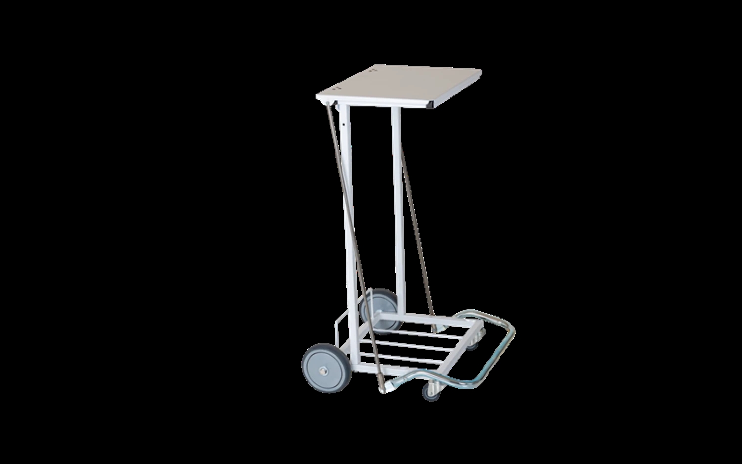 Et godt og mobile affaldsstativ til 110 ltr. sække. Affaldsstativet er udstyret med pedal og bundplade og 2 store hjul og 2 små hjul så det nemt kan flyttes rundt. Det er udført i pulverlakeret hvid farve og dansk produceret.