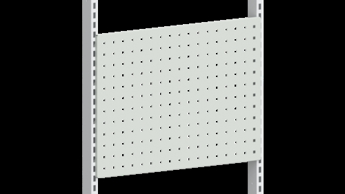 Perforeret værktøjspanel til montering på perforeret stolper eller vægskinner. Panelet monteres tæt mod søjlen for at reducere raslen. Pladetykkelse 1,5 mm, hulmål 9x9 mm og hulafstand c/c 38 mm. 14 mm foldet kant hele vejen rundt.
