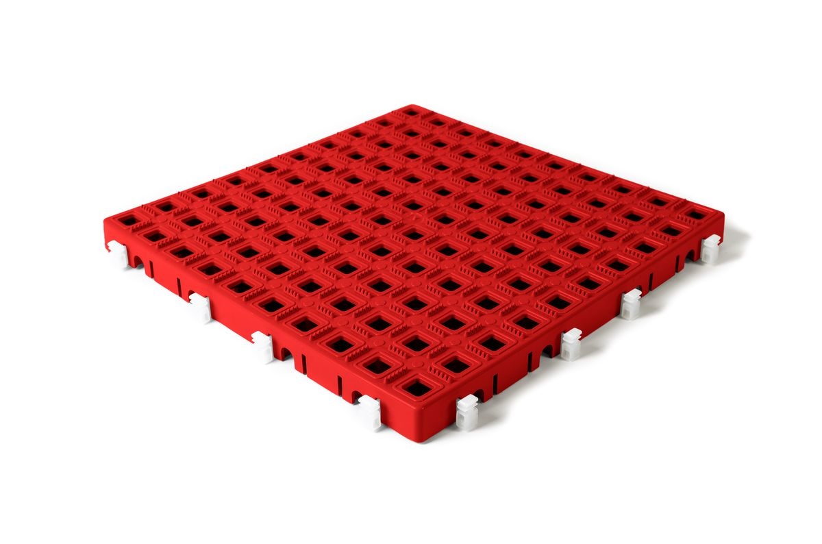 De skridsikre plastfliser er et godt alternativ til en aflastningsmåtte, da fliserne kan modulopbygges som det passer bedst, hvilket gør det til en utrolig alsidig løsning. Der fås også ramper og hjørneramper til systemet som udover at give en smart finish også minimerer snublerisikoen. Fliserne er nemme at sætte sammen og skille ad. Fliserne fås med og uden huller og fås i farverne: Grå, sort, gul, rød, og kan fås i andre farver ved større mængder