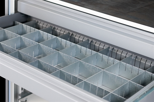 Skuffeindretning der skaber orden i skufferne. Passer til skuffer med indvendige mål på B900 x D450 x D100 mm.
