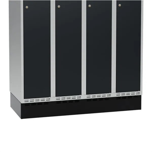 Sokler til garderobeskabene placeres hurtigt og enkelt op på de helsvejste sokler - ingen montering. Højden på understellet er 150 mm. Fås i bredden 300, 400, 600, 800, 900 og 1200 mm.