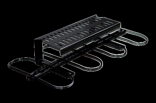 Komplet kabelophæng inklusive transformerholder. Monteres under bordpladen på et skrivebord eller arbejdsbænk. Kabelophænget består af wireclips (2,5 mm), der holder kablerne på plads. Transformerholderen har huller til ventilation nedenunder, som også kan bruges til at fastgøre kabelbindere. Maksimal størrelse på transformer: bredde 68 mm, højde 45 mm.