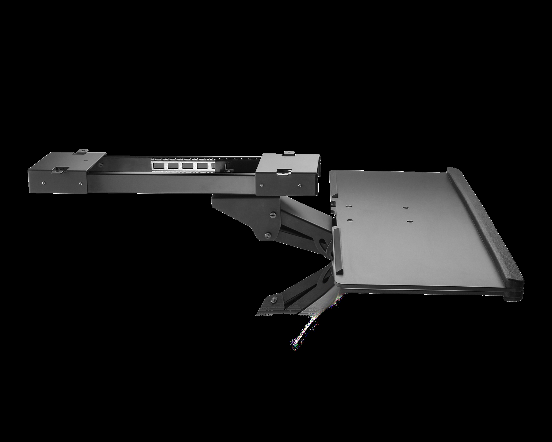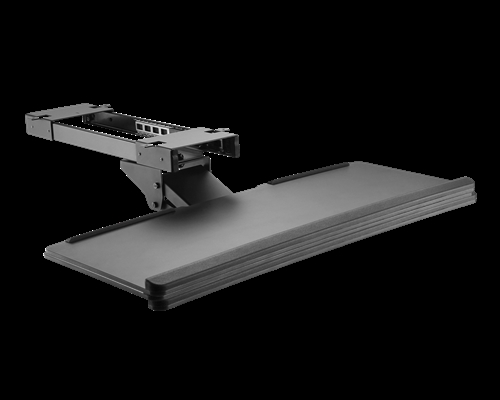 Tastaturhylde med håndledsstøtte. Stabil metalkonstruktion med smart glidefunktion for nem håndtering. Hylden måler 670x255 mm med ekstra plads til computermus. Belastningsevne 2 kg.