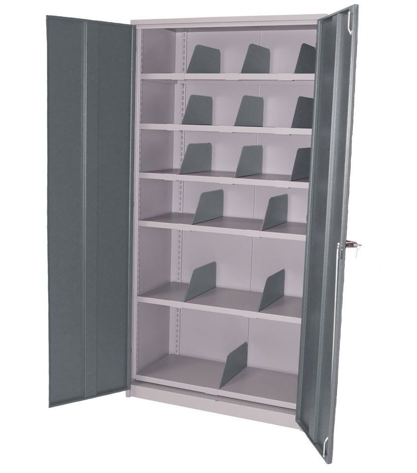 Et robust værkstedsskab fremstillet i en helsvejst konstruktion af stålplader. Et meget kraftigt værkstedsskab, hvor tungt værktøj og maskiner kan opbevares - tilpasset krævende miljøer som værksteder og lager. Det egner sig også som kontor- eller arkivskab. Skabet er udstyret med justerbare fødder, som gør at det står stabilt også er på ujævnt underlag og det holder til en maks. belastning på 500 kg. Det er lakeret i grå nuancer. Den mørke nuance på dørene for at mindske risikoen for smuds og fingeraftryk.