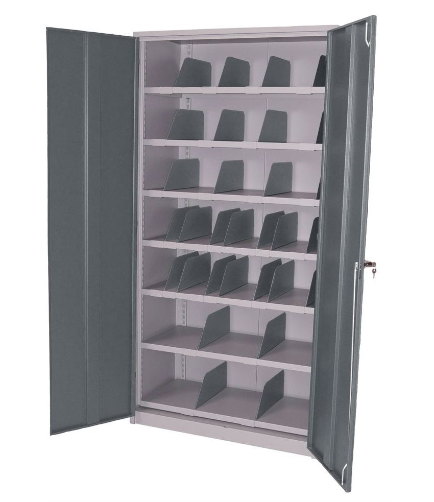 Et robust værkstedsskab fremstillet i en helsvejst konstruktion af stålplader. Et meget kraftigt værkstedsskab, hvor tungt værktøj og maskiner kan opbevares - tilpasset krævende miljøer som værksteder og lager. Det egner sig også som kontor- eller arkivskab. Skabet er udstyret med justerbare fødder, som gør at det står stabilt også er på ujævnt underlag og det holder til en maks. belastning på 500 kg. Det er lakeret i grå nuancer. Den mørke nuance på dørene for at mindske risikoen for smuds og fingeraftryk.