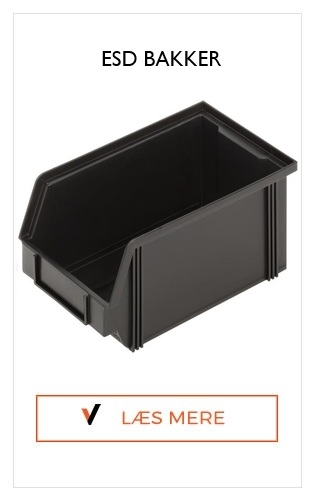 WEZ ESD Forrådsbakke 0,2 L - 95 x 100 x H50 mm Dim.: 95 x 100 x 50 mm Volume.: 0,2 L Antistatisk og med skillerum Cl. enhed: 1 stk Forpakning: 50 stk Artnr.: 602040
