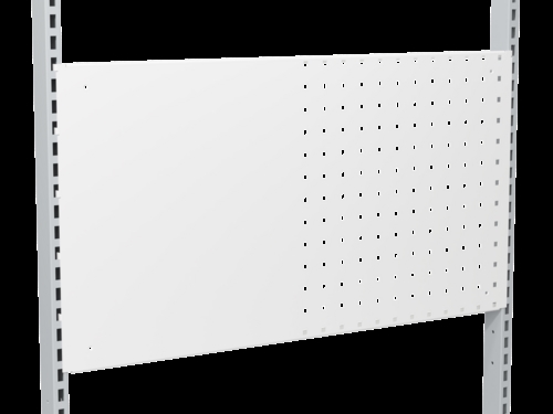 Panel med halvdelen af ​​siden som whiteboard (lavet i whiteboardfarve) og halvdelen af ​​siden med perforering til ophængning med værktøjskroge. Panelet er egnet til væg- eller søjlemontering.